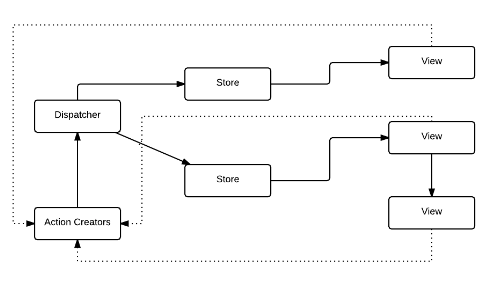 Flux attempts to solve this complexity by forcing a unidirectional data flow. In this architecture, Views query Stores (not Models), and user interactions result in Actions that are submitted to a centralized Dispatcher. When the Actions are dispatched, Stores can then update themselves accordingly and notify Views of any changes. These changes in the Store prompts Views to query for new data.