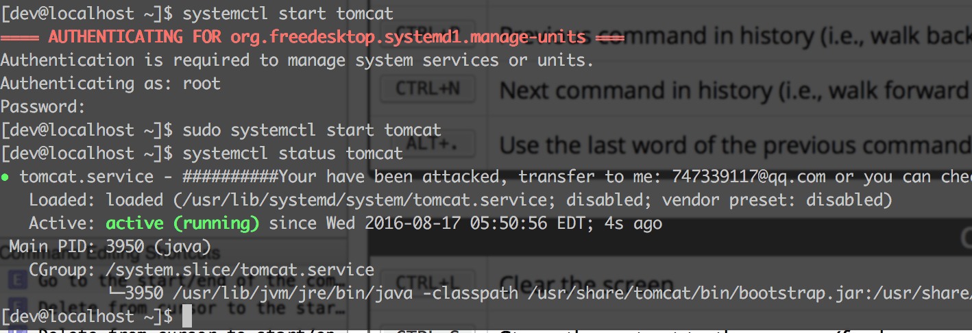 | sudo systemctl restart tomcat | systemctl 是系统命令,需要 sudo |