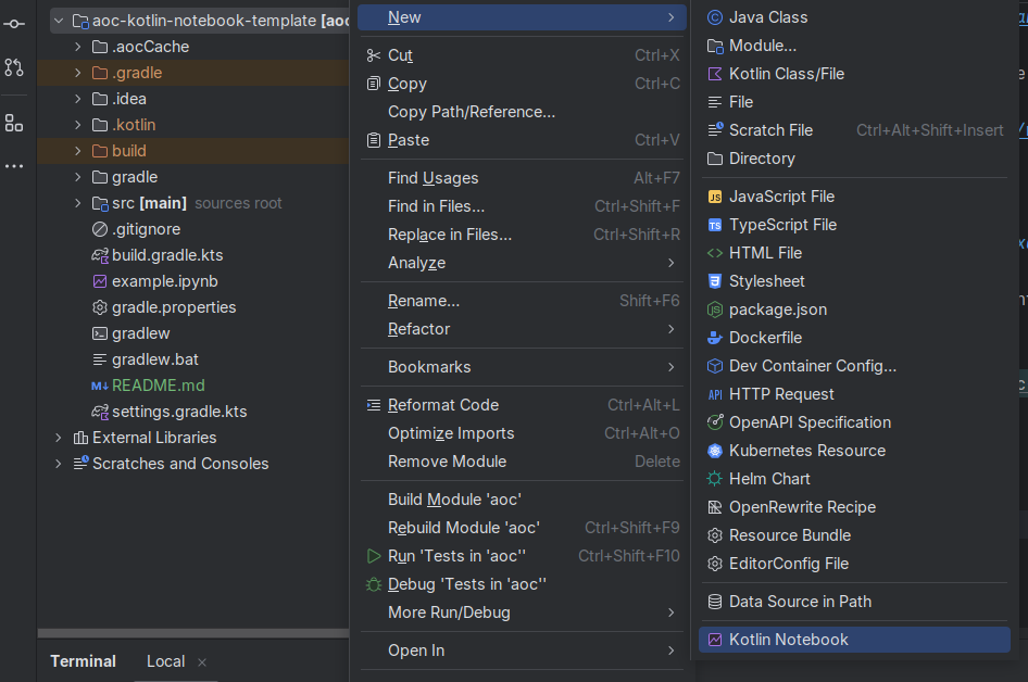 @file:DependsOn("com.toldoven.aoc:aoc-kotlin-notebook:1.1.2")Or with Gradle inside of build.gradle.kts if you don't want to add it manually every time you create a new notebook: