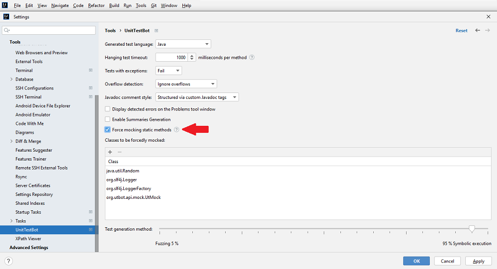 In the Generate Tests with UnitTestBot window choose your Mocking strategy: