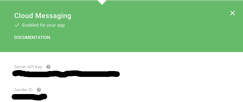 Enable Google Cloud Messagingbutton:A server key will be generated for you. Record this data.