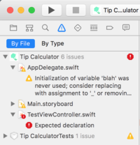 When you attempt to run your code, Xcode may report compiler warnings or errors. These messages will show up in a number of places.