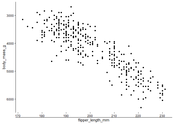 geom_point(aes(x = flipper_length_mm, y = body_mass_g)) +